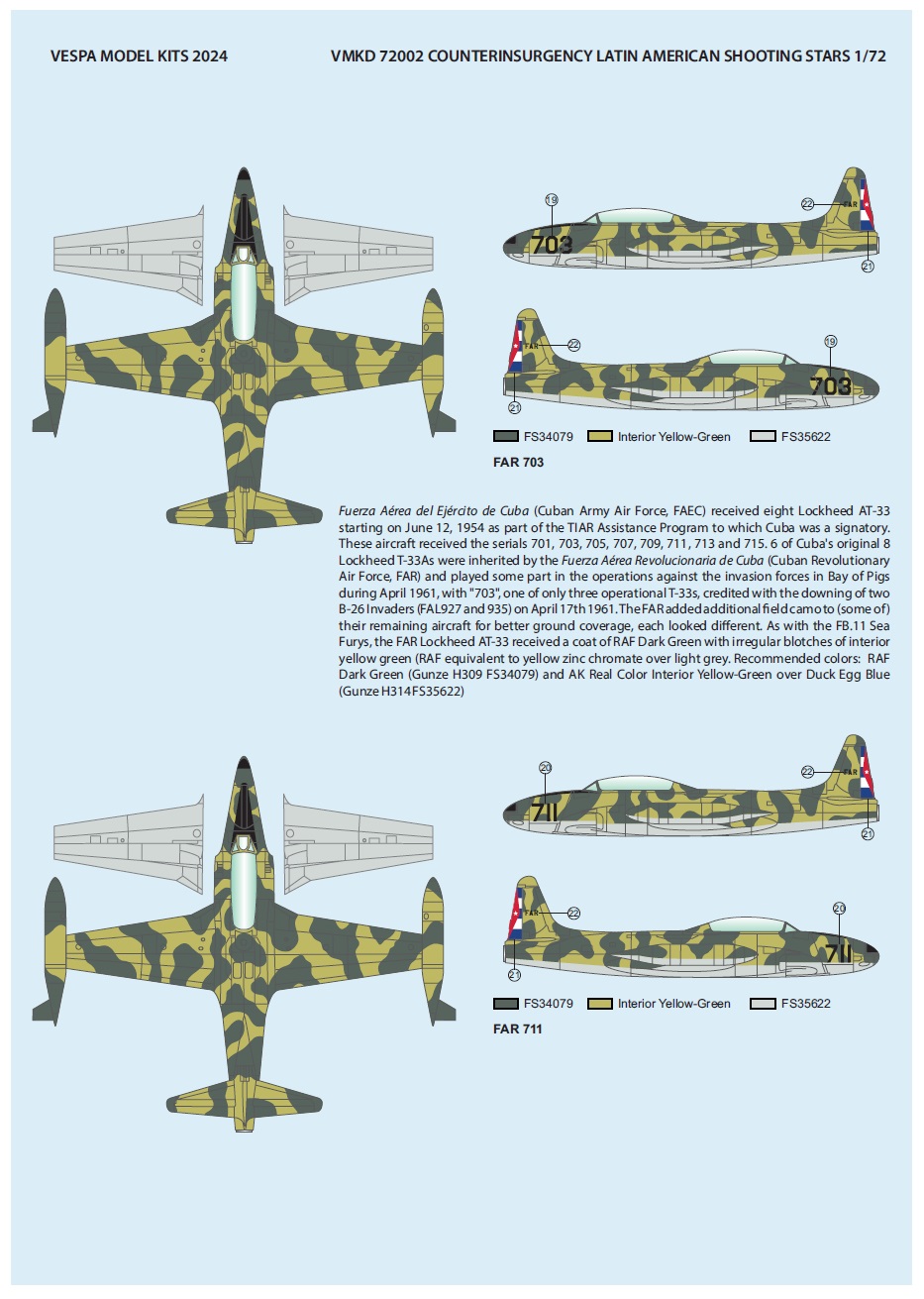 Vespa Models - 1/72 Latin American Counter-Insurgency Shooting Stars Lockheed AT-33A