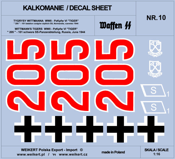 WEIKERT DECALS - 1/16 TIGER I 205 101st SS, Normandy, June 1944 decal
