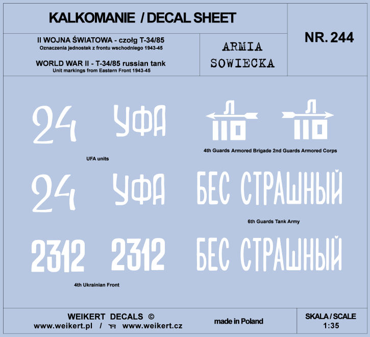 WEIKERT DECALS - 1/35 Soviet Army T-34/85 East.Front, 1943-45 Part 3 decal
