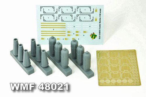Wingman Models - 1/48 SUU-30 B/B (CBU52/58) Cluster Bombs Six SUU-30 CBUs including Pe parts and decals. These bombs were used in Vietnam and during the Yom Kippur War, employed by A-7, A-4, F-4, F-104 and F-105 aircraft.