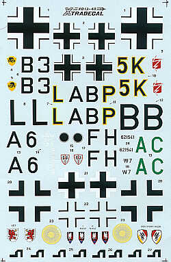Xtradecal - 1/48 Junkers Ju-88A-4/D-1/G-6C (4) B3+LA 111/KG54, 5K+BP 6/KG3 Blitz, A6+FH FAGR.120, W7+AC II Gruppe Staff Flt NG100. Also badges for Lg 1, I/NJG 2, II/NJG 2, Gesch. Stab KG30