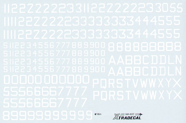 Xtradecal - 1/48 WWII British Pacific Fleet National Insignia/Roundels and 12 numbers, 18 and 24 white letters and numbers. 3 sheet set (RAF codes/RAF code letters/RAF serial numbers)