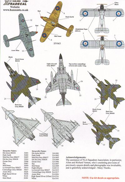 Xtradecal - 1/48 . History of RAF 6 Sqn 1931-2010 (5) Bristol F2B FR4744 Ismalia, Egypt 1931, Hawker Hurricane Mk.IID HV663/U Tunisia 1943, McDonnell Phantom FGR.2 XV492/Q Conningsby 1974, Jaguar GR.1 XX766/EA 76th Anniversary Coltishall 1989, Eurofighter Typhoon FGR.4 ZK306/ED Fl/Lt C.Brough Leuchars 2010