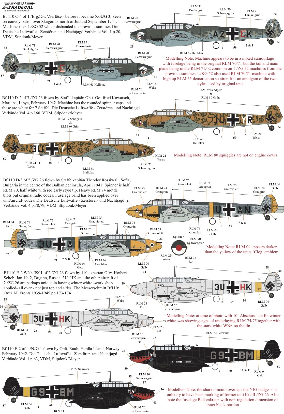 Xtradecal - 1/48 Messerschmitt Bf-110C/Bf-110D/Bf-110E/Bf-110F/Bf-110G (9)