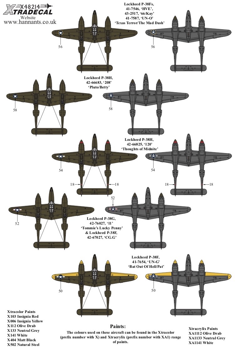 Xtradecal - 1/48 Lockheed P-38F/G/H Lightning