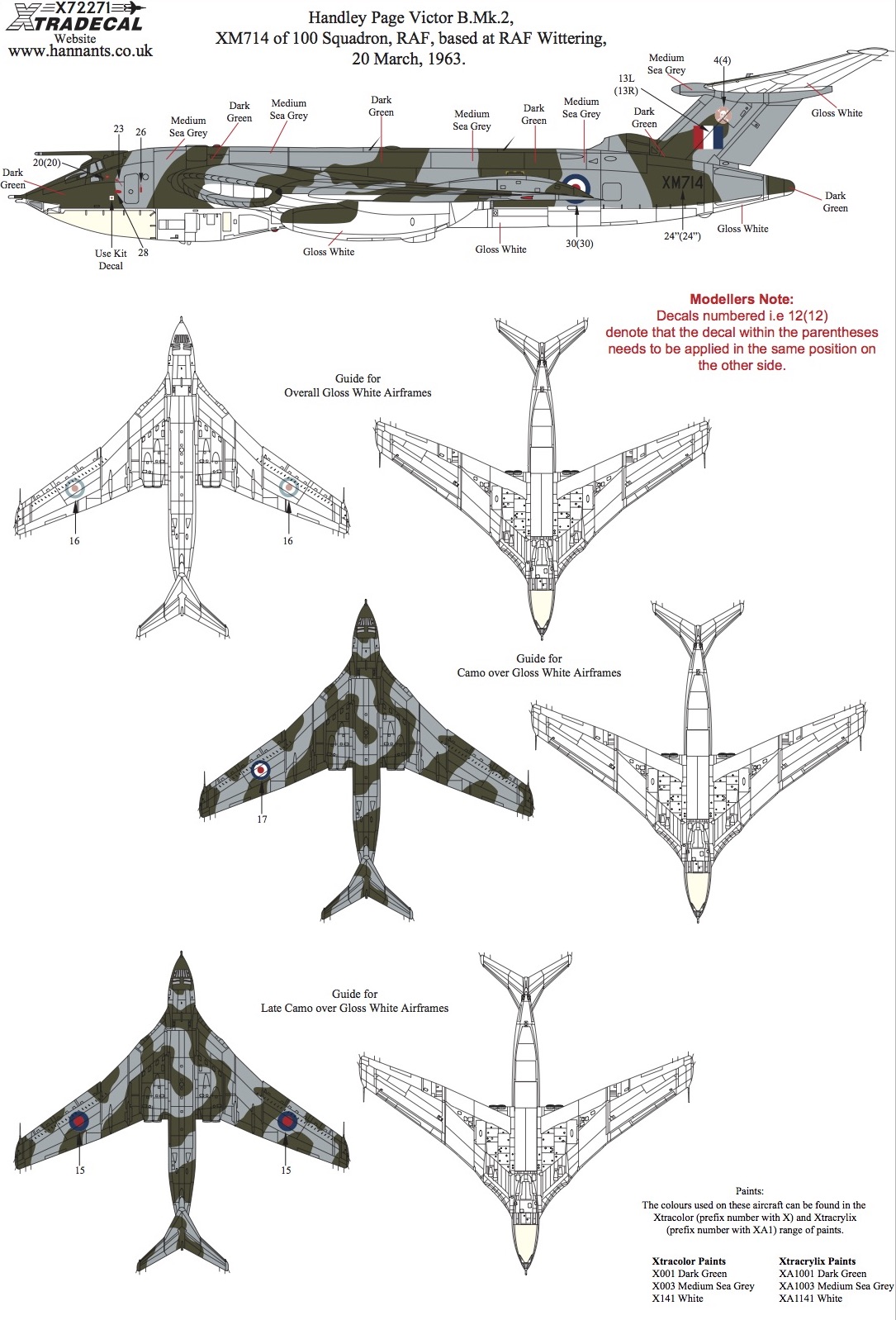 Xtradecal - 1/72 Handley-Page Victor B.2 (7) The aircraft on this sheet have been changed since first published. If you have ordered it please check that the Victor you want is still there.