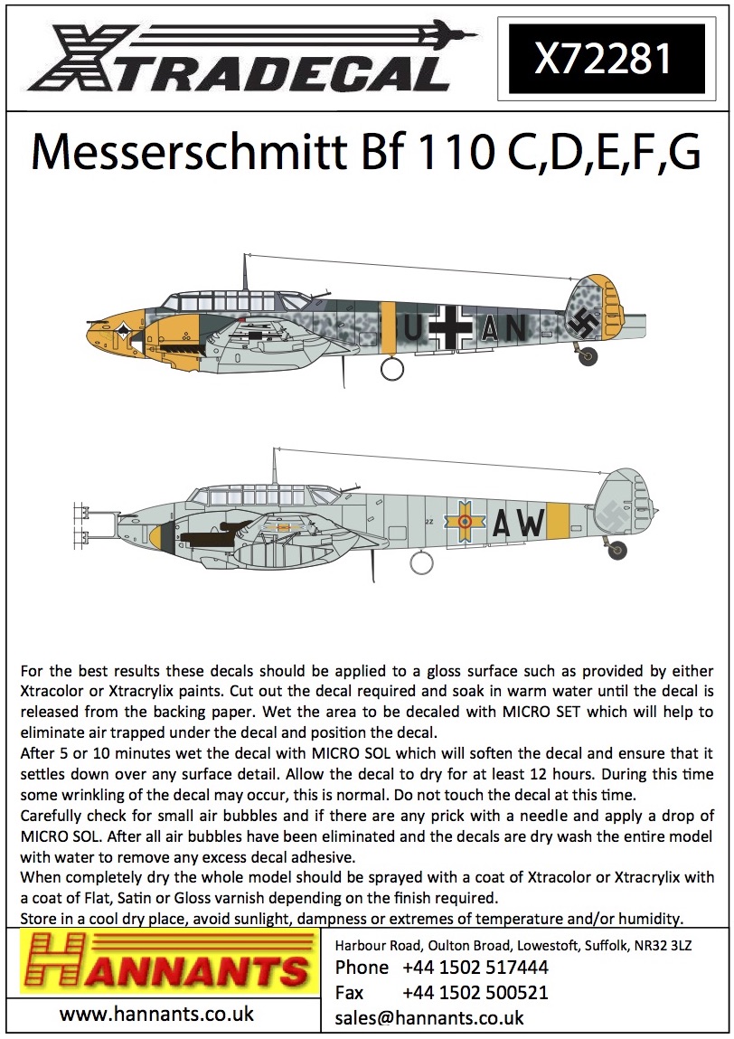 Xtradecal - 1/72 Messerschmitt Bf-110C/Bf-110D/Bf-110E/Bf-110F/Bf-110G (11)