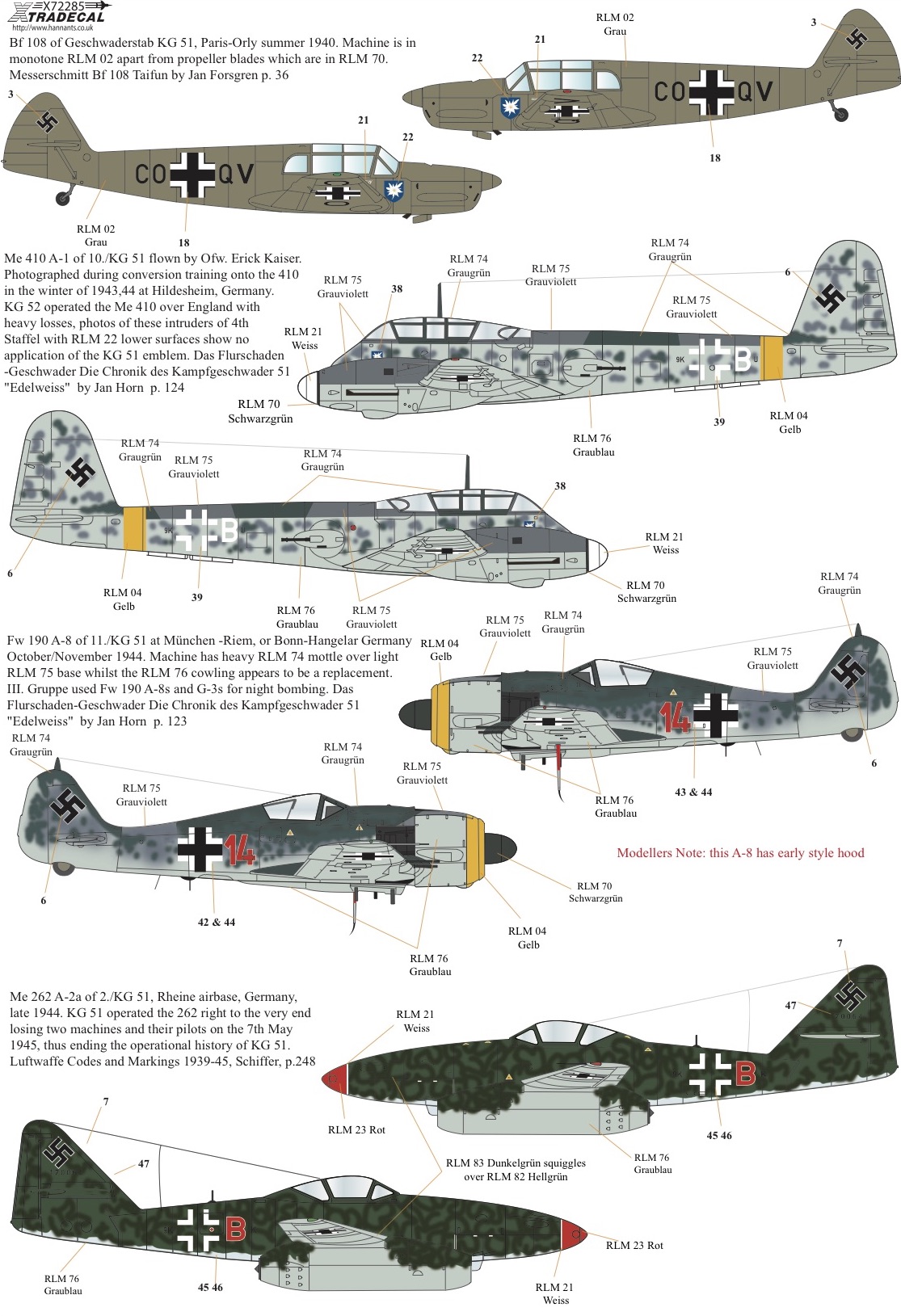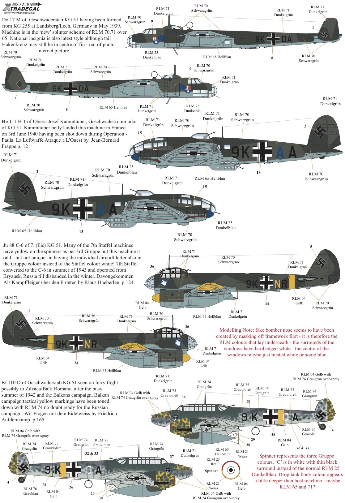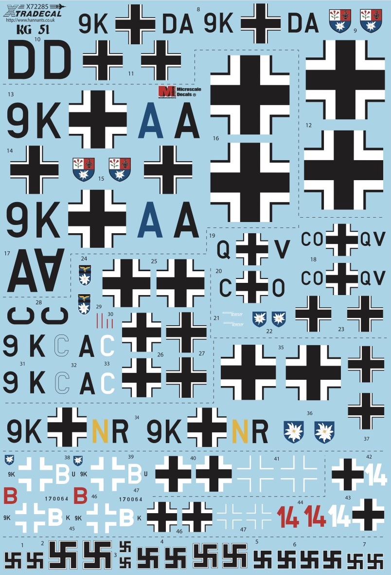 Xtradecal - 1/72 The History of Kampfgeschwader KG51 Edelweiss (8 different aircraft)