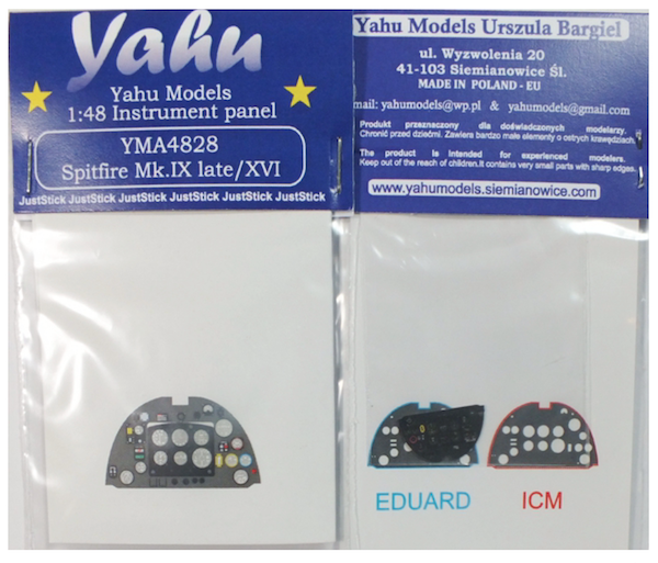 Yahu Models - 1/48 Supermarine Spitfire Mk.IX late / Mk.XVI Photoetched instrument panels. Coloured. Ready to fit in a model (JustStick) (for Eduard and ICM kits)