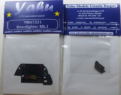 Yahu Models - 1/72 Bristol Beaufighter Mk.I high quality, colour printed, etched cockpit instrument panel (designed to be used with Hasegawa kits) pre-assembled version