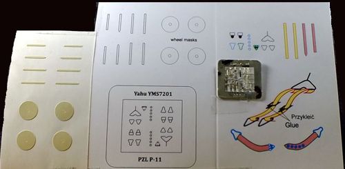 Yahu Models - 1/72 PZL P.11C etched parts and wheel paint masks (designed to be used with Azur, Heller and PZW kits)
