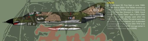 Zotz - 1/32 F-4E Phantom 388th TFW at Korat RTAB 1968 coded JJ and JV all with shark mouths Pt 1 (9) 70-309 Betty Lou, 70-275 Sweetie Pie, 70-371 Arizona Chicken, 70-279 Tiny Bubbles, 70-208 Here Come the Judge, 70-342 Lil Buddha, 70-290 Super Spook, 70-228 Nit Noy Boye II, 70-289 Gator. Includes brief history of each Phantom.