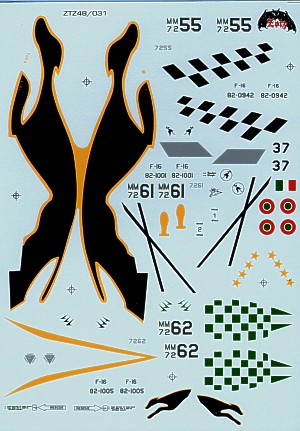 Zotz - 1/48 General-Dynamics F-16A Italian Air Force. MM7255 18th Gruppo, MM7261 10th Gruppo, MM7261 and MM7250 37th Stormo with 2006 Italy World Cup winners markings, MM7251 5th Stormo/23rd Gruppo 2008 90th Anniversary scheme.