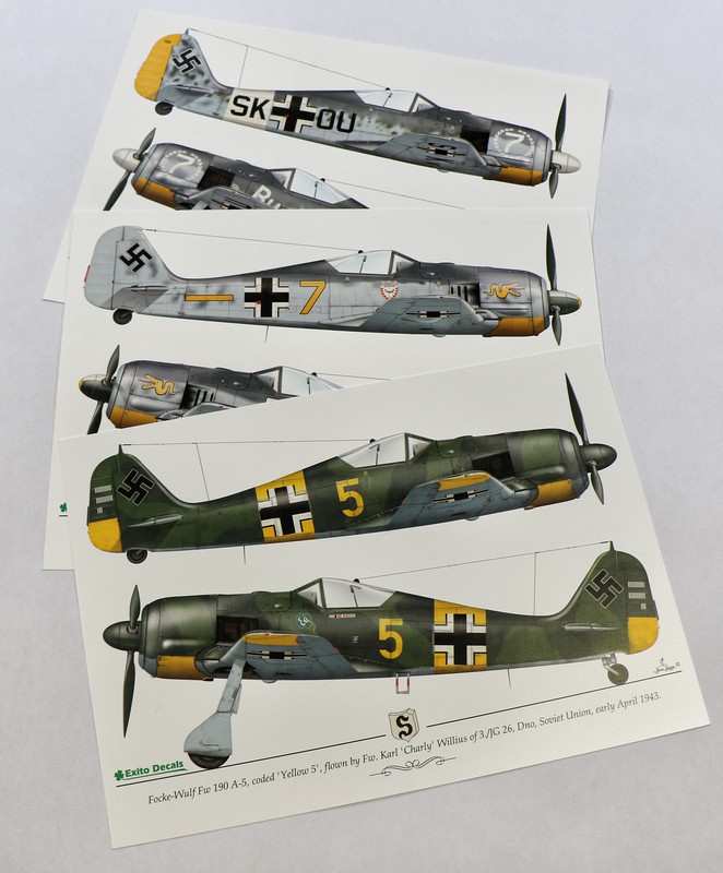None of these aircraft have been available in decal form before. Yellow 5 is the only documented Fw 190 with victory markings that served on the Eastern Front. Decals include bonus Andrehkurbel stencils, which are missing from the majority of kit and aftermarket Fw 190 stencils.