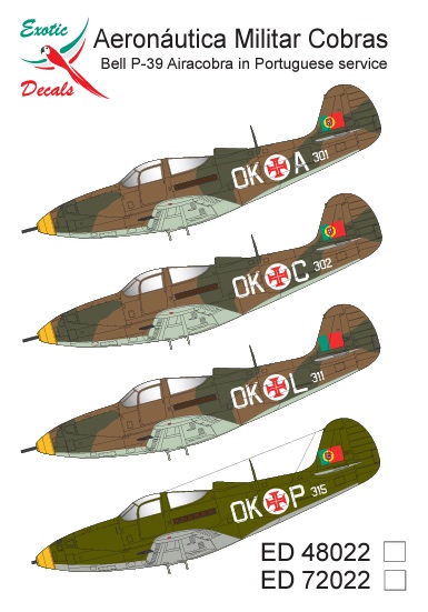 Exotic Decals - 1/72 Aeroniutica Militar Cobras Bell P-39 Airacobra in Portuguese service