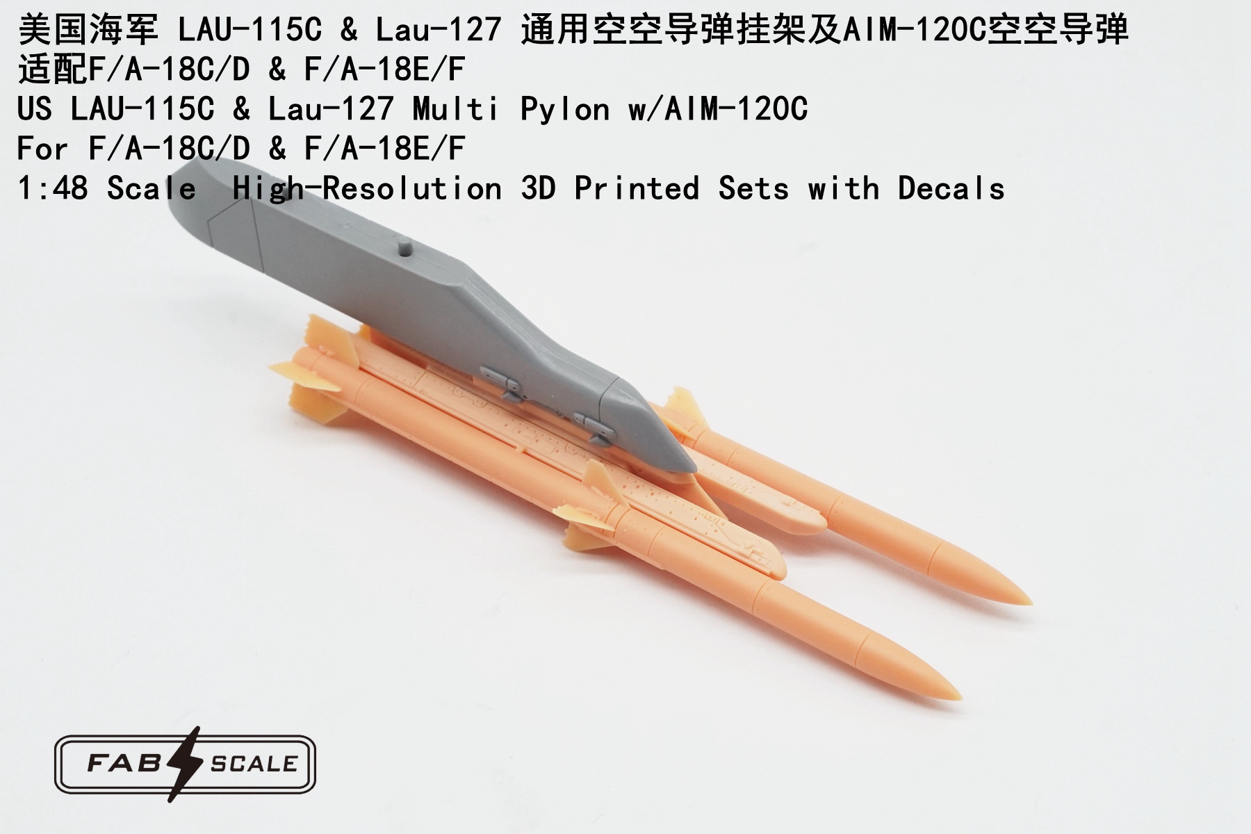 FabScale Studio - 1/48 LAU-115C & LAU-127 multi pylon with AIM-120C for Lockheed-Martin F/A-18C and F/A-18D and Boeing F/A-18E and F/A-18F Super Hornet for Hasegawa