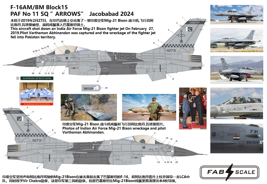 FabScale Studio - 1/48 General-Dynamics F-16AM/F-16BM Block 15 Paf No 11 Sq 'ARROWS' Jacobabad 2024 Mig/Sukhoi Killer