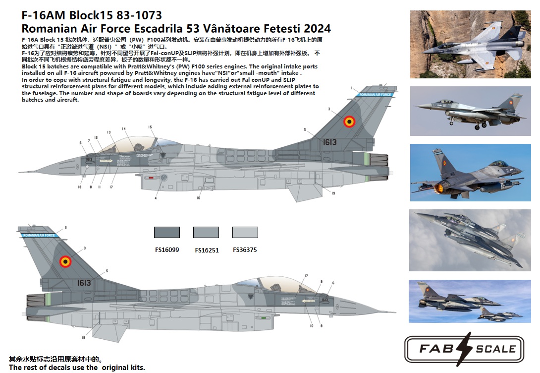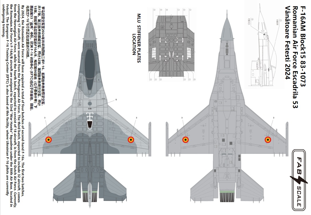 FabScale Studio - 1/48 General-Dynamics F-16AM Block 15 83-1073 Romanian Air Force Escadrila 53 Vanatoare Fetesti 2024 Photo-etched Parts Included
