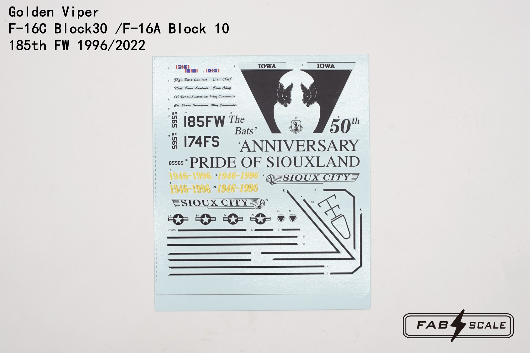 FabScale Studio - 1/72 USAF Golden Viper Lockheed-Martin F-16C Block 30 /General-Dynamics F-16A Block 10 185th Fw 1996/2022