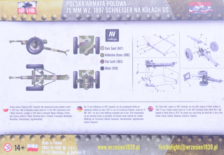 First to Fight Kits - 1/72 Schneider 75mm Polish Field Cannon DS wheels