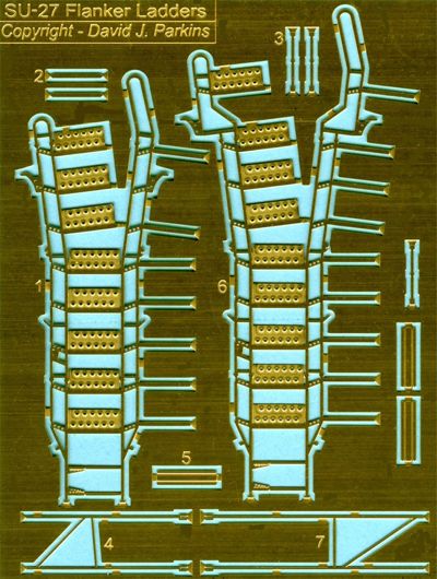 Flightpath UK - 1/48 Sukhoi Su-27 Flanker Ladders - Any Kit - This kit contains parts for BOTH a single seat/front twin-seat ladder - and a rear twin-seat ladder. These are relatively simple to construct but build into detailed units complete with all the raised detail on each step-tread (designed to be used with Academy, Eduard and Hobby Boss kits)[Su-27MKK Su-27UB]