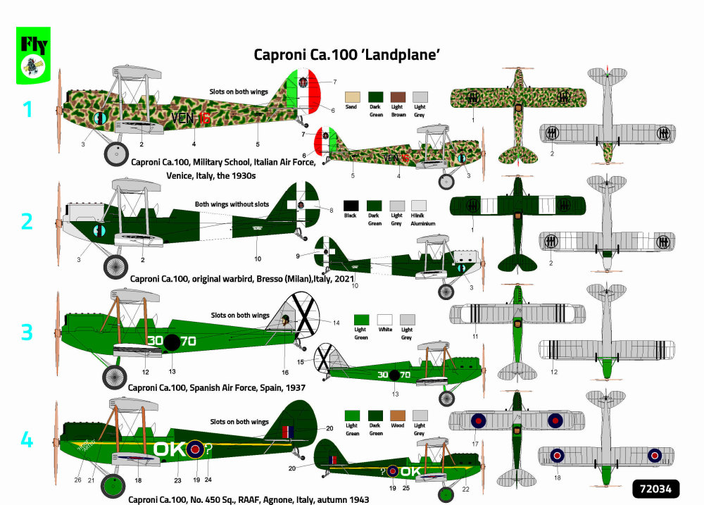 FLY - 1/72 Caproni Camouflage 100 Landplane for 4x camouflages