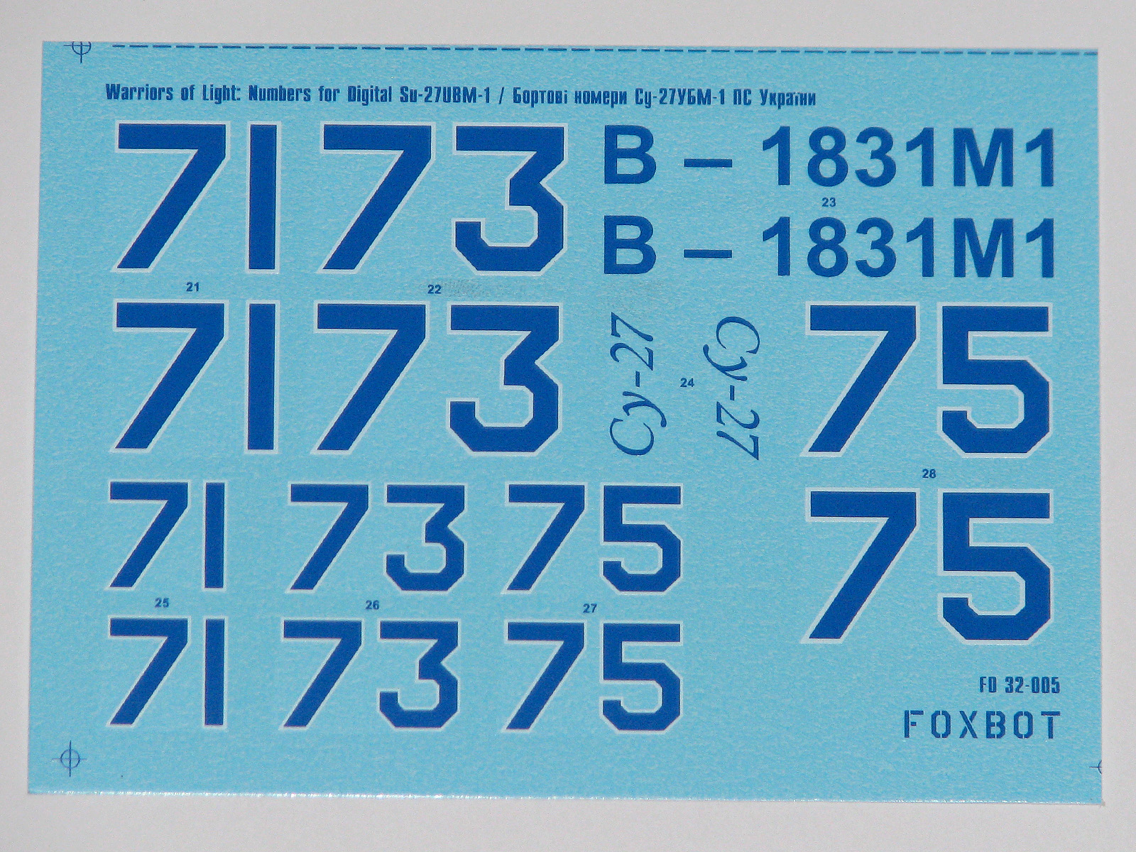 Foxbot Decals - 1/32 Digital Sukhoi Su-27UBM Numbers