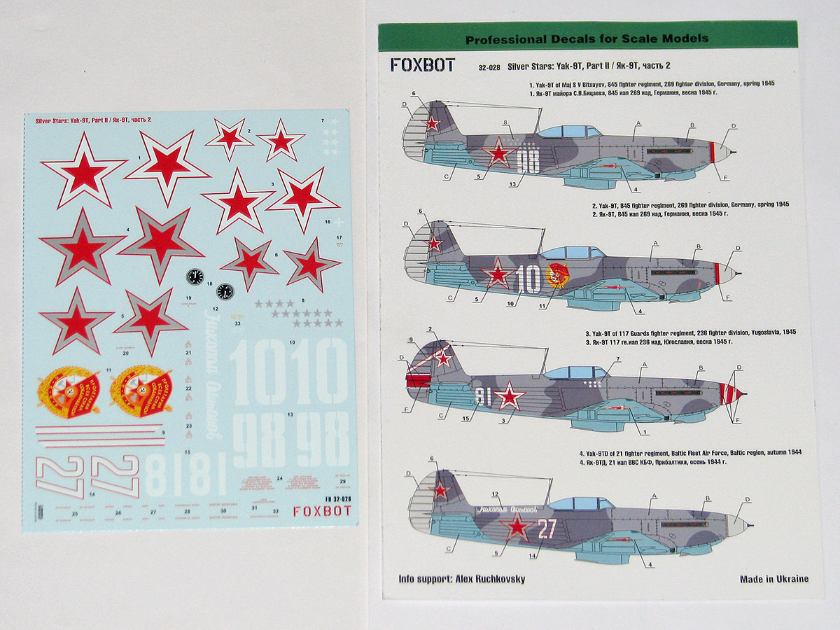 Foxbot Decals - 1/32 Silver Stars: Yakovlev Yak-9T, Part 2 (ICM, Silver Wings)