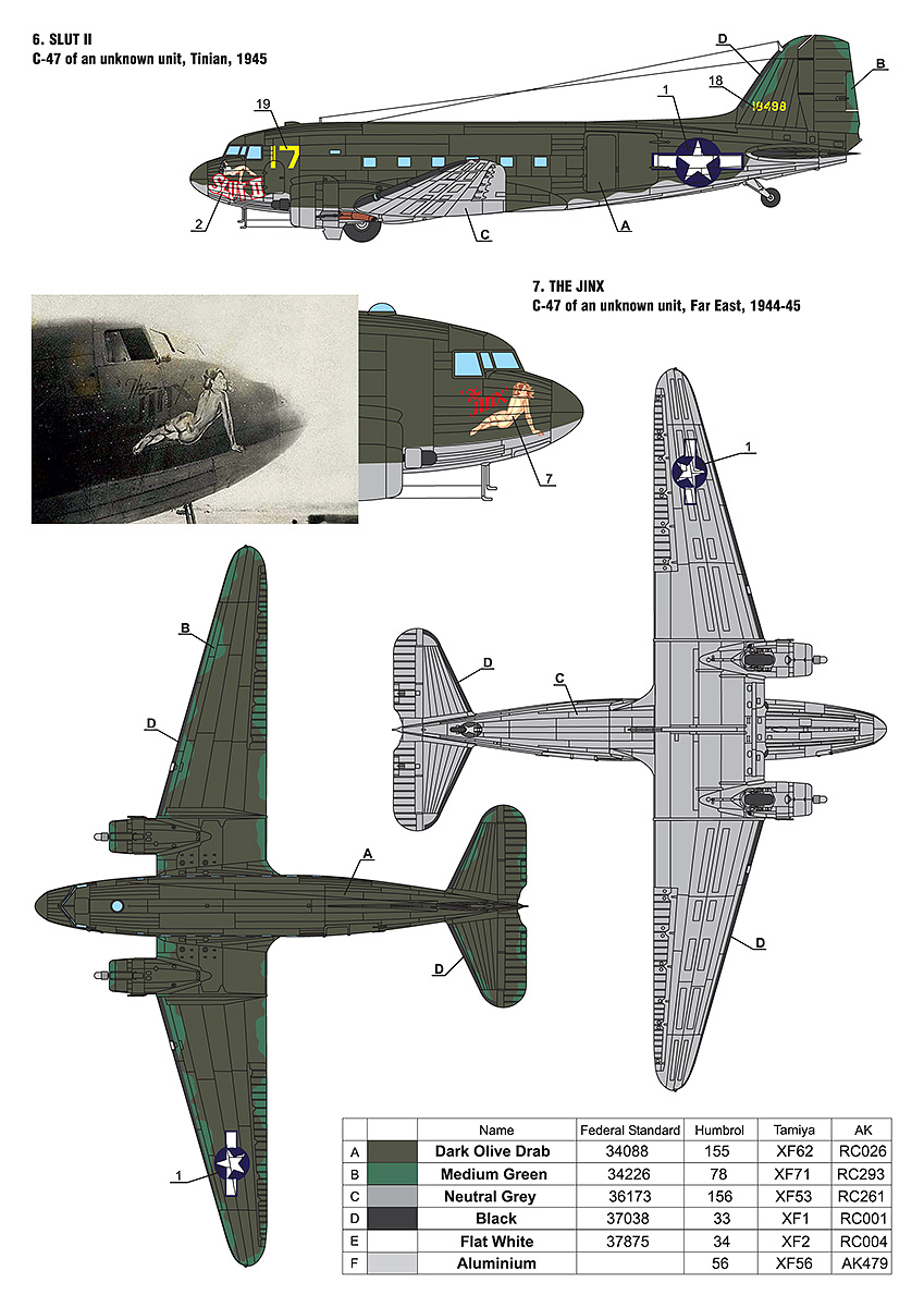 Foxbot Decals - 1/48 Douglas C-47 Skytrain/Dakota 'Pin-Up Nose Art and Stencils' Part Part 2 Monogram, Revell, Trumpeter kits.