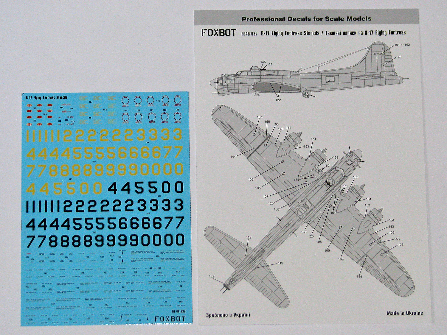Foxbot Decals - 1/48 Stencils for Boeing B-17 Flying Fortress (for Hasegawa, Hong Kong Models, Monogram Pro Modeler and Revell kits)