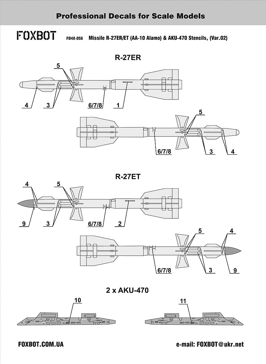 Foxbot Decals - 1/48 Soviet Missile R-27ER/ET (AA-10 Alamo) & AKU-470 Stencils (Var.2)