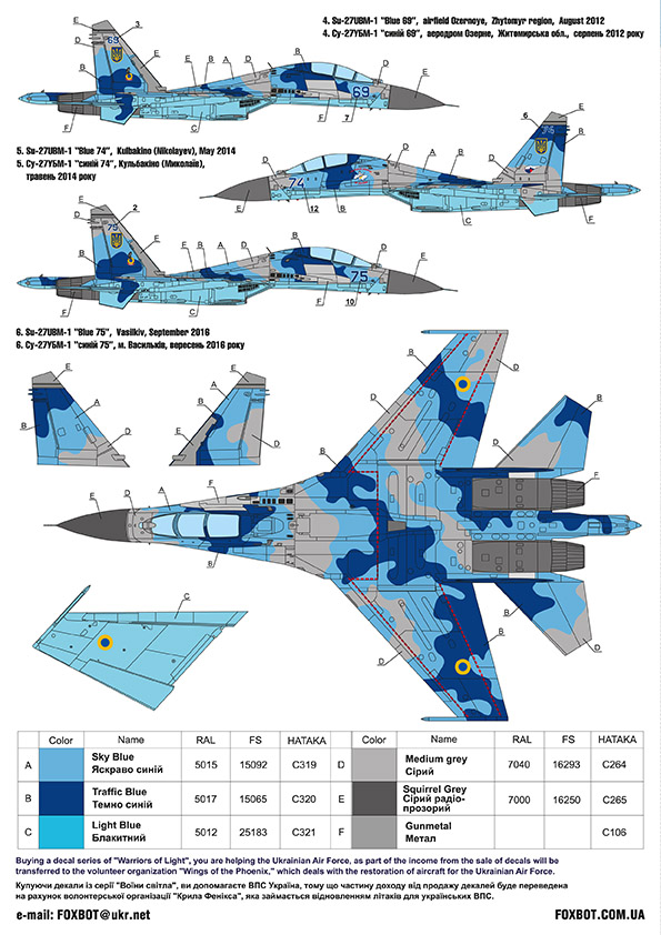 Foxbot Decals - 1/48 Numbers for Sukhoi Su-27UBM, Ukranian Air Forces, digital camouflage (for Academy, Eduard, HobbyBoss, Great Wall Hobby and Kitty Hawk Model kits)
