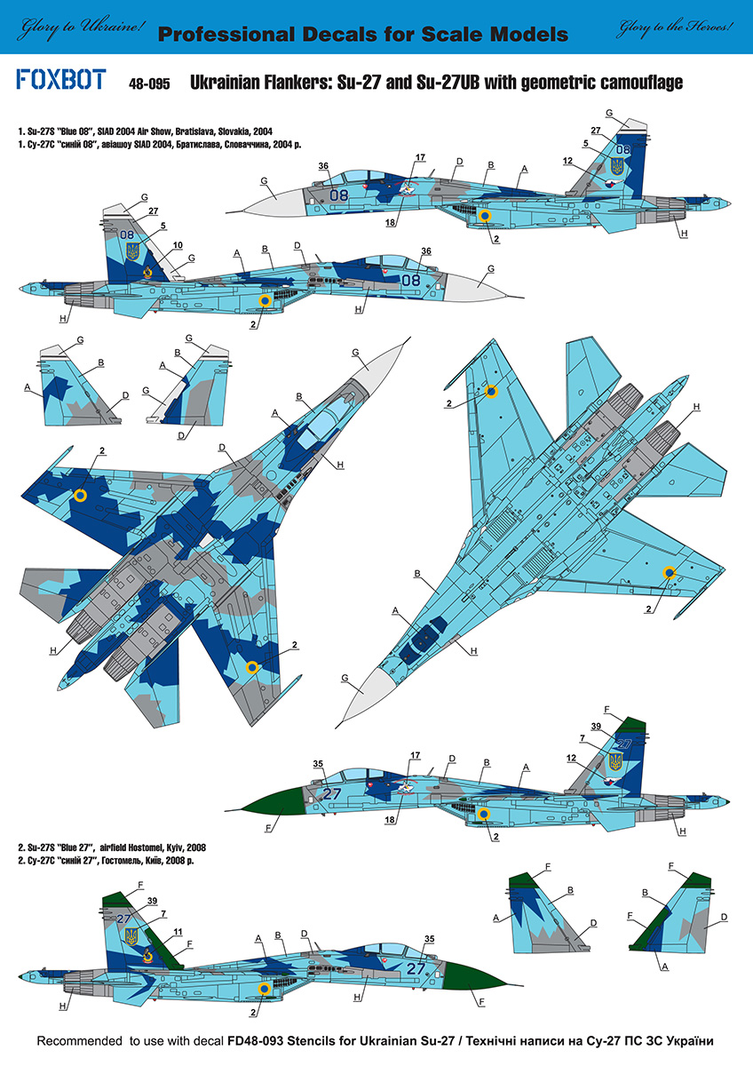 Foxbot Decals - 1/48 Ukrainian Su-27 and Su-27UB with geometric camouflage and Stencils Academy, Eduard, Great Wall Hobby, HobbyBoss, Kitty Hawk