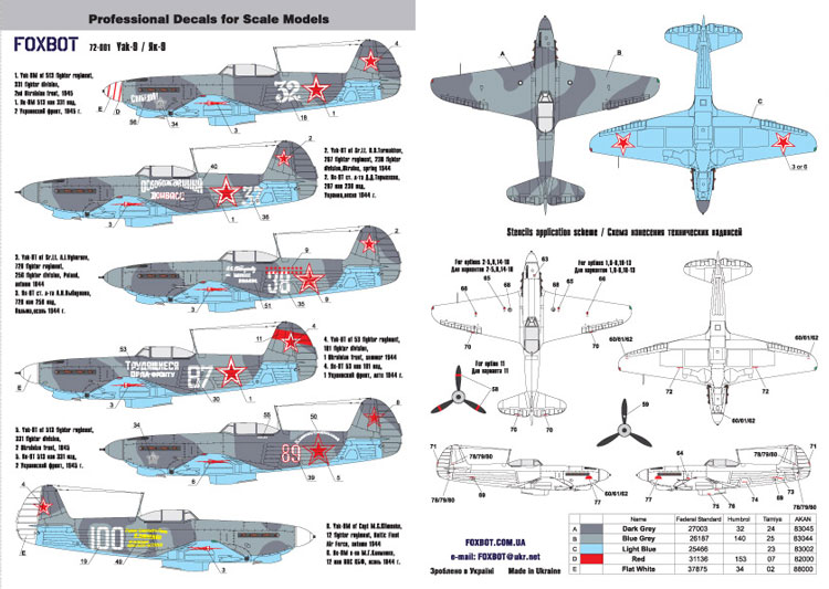 Foxbot Decals - 1/72 Yakovlev Yak-9 for Airfix, ICM, Alanger, Dakoplast, Eastern Express kits