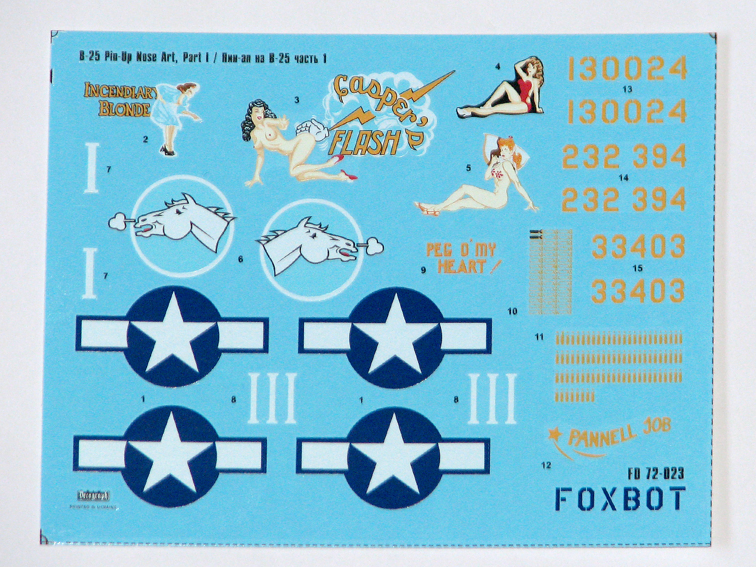 Foxbot Decals - 1/72 North-American B-25C/D Mitchell Pin-Up Nose Art & Stencils Part Part 1