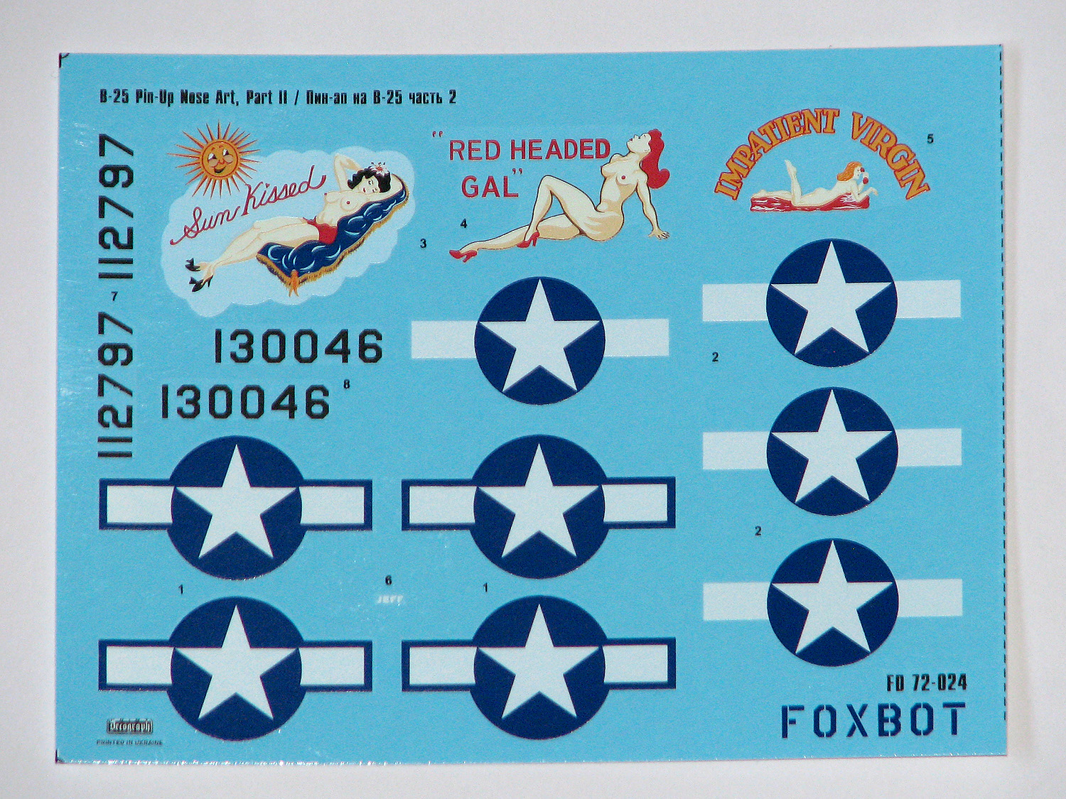 Foxbot Decals - 1/72 North-American B-25C/D Mitchell Pin-Up Nose Art & Stencils Part 2