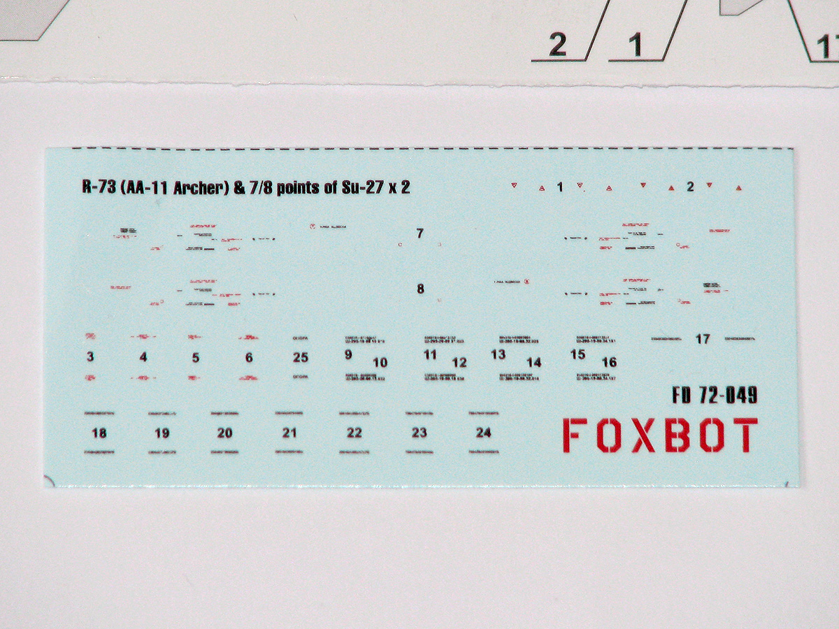 Foxbot Decals - 1/72 Soviet Missile R-73 (AA-11 Archer) & 7/8 points for Sukhoi Su-27 Stencils