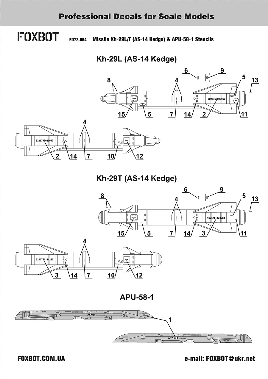 Foxbot Decals - 1/72 Stencils for Missile Kh-29L/T (AS-14 Kedge) & APU-58-1