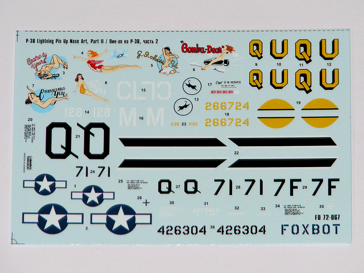 Foxbot Decals - 1/72 Lockheed P-38 Lightning Pin-Up Nose Art, Part II