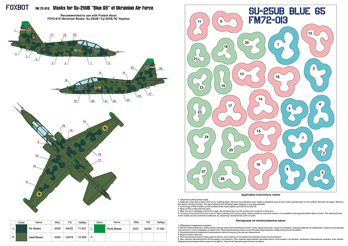 Foxbot Decals - 1/72 Masks for Sukhoi Su-25UB Blue 65