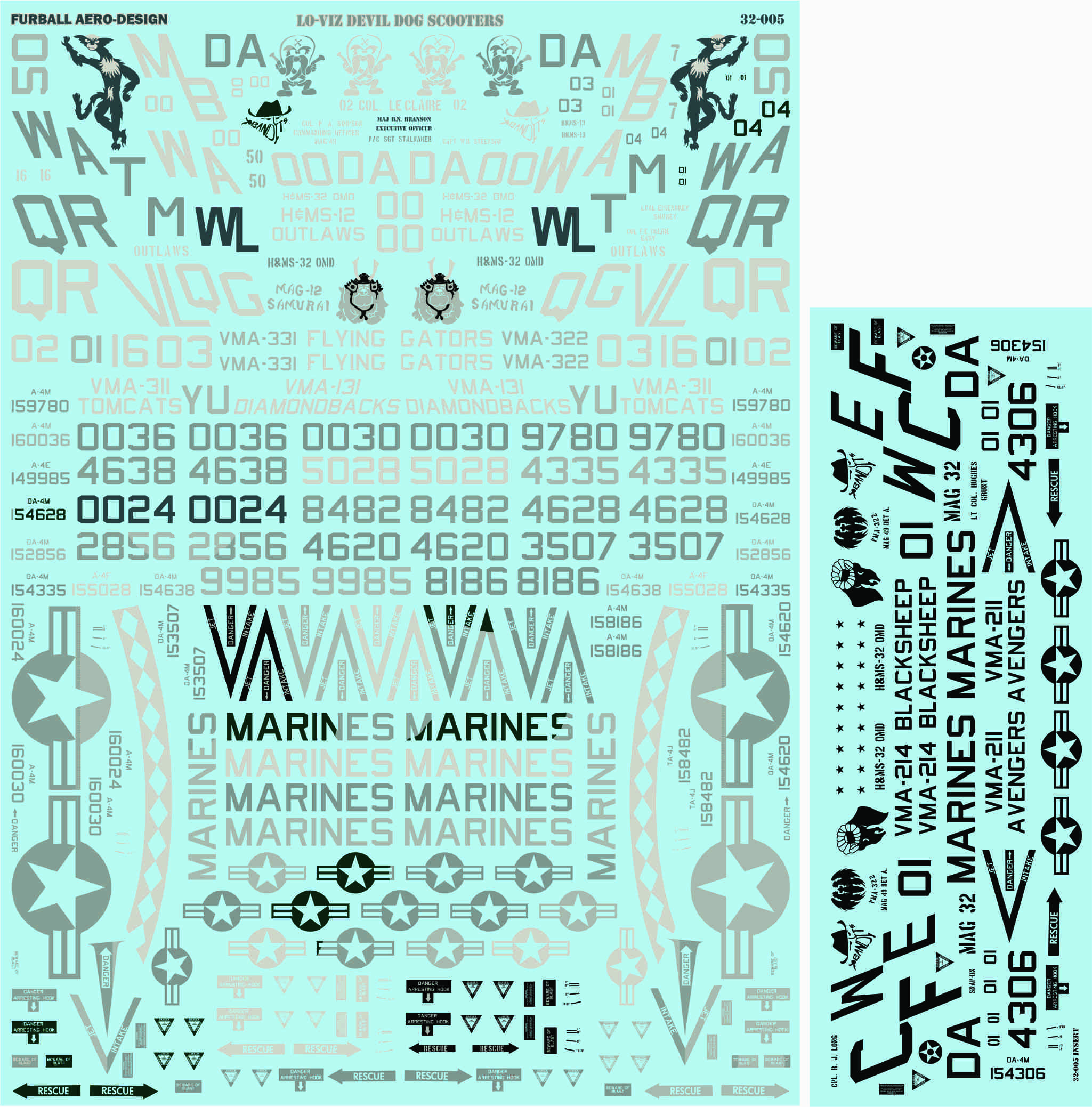 One of our most popular subjects now in 1/32! This sheet includes options for 16 1/48 OA-4M, TA-4J, A-4M, A-4F, & A-4E Skyhawks. Enough stencils and data are included to build 2 complete models. Here's the rundown on the aircraft covered: