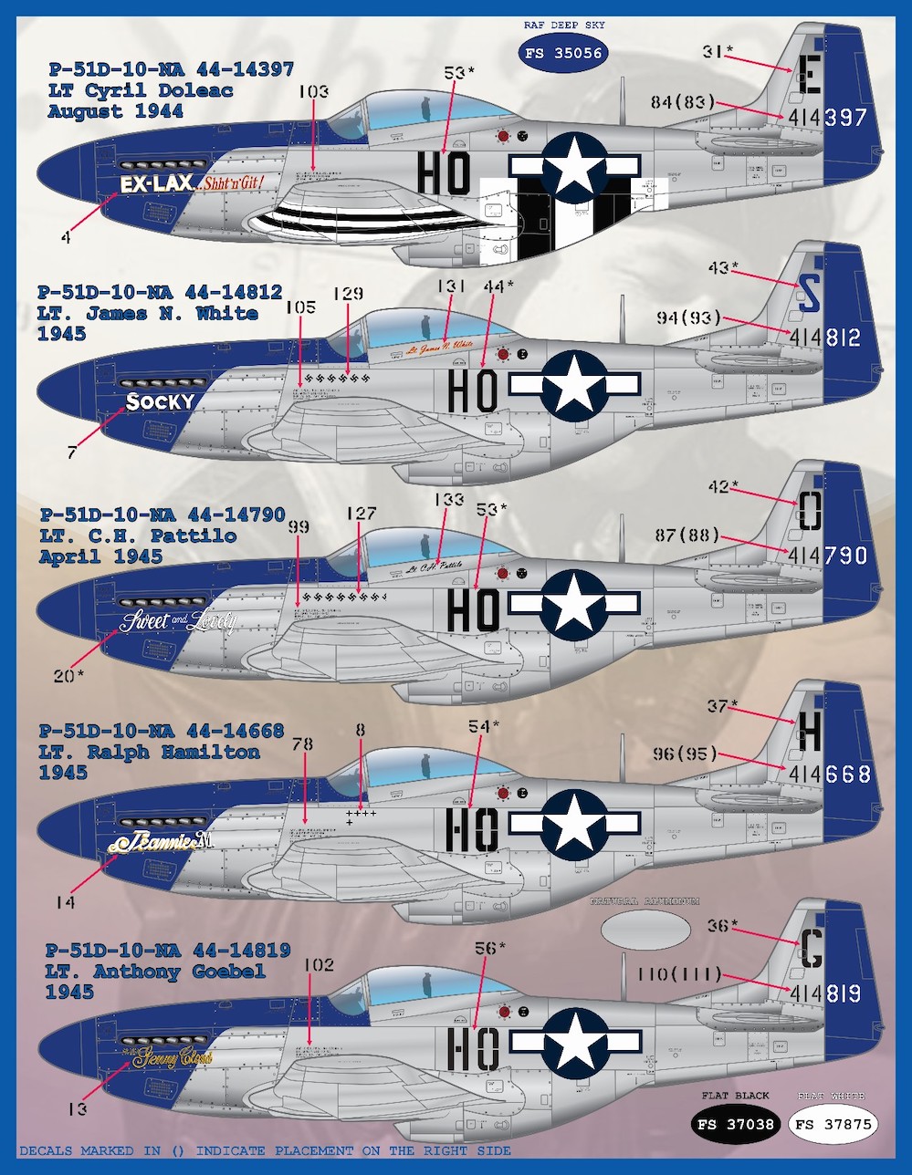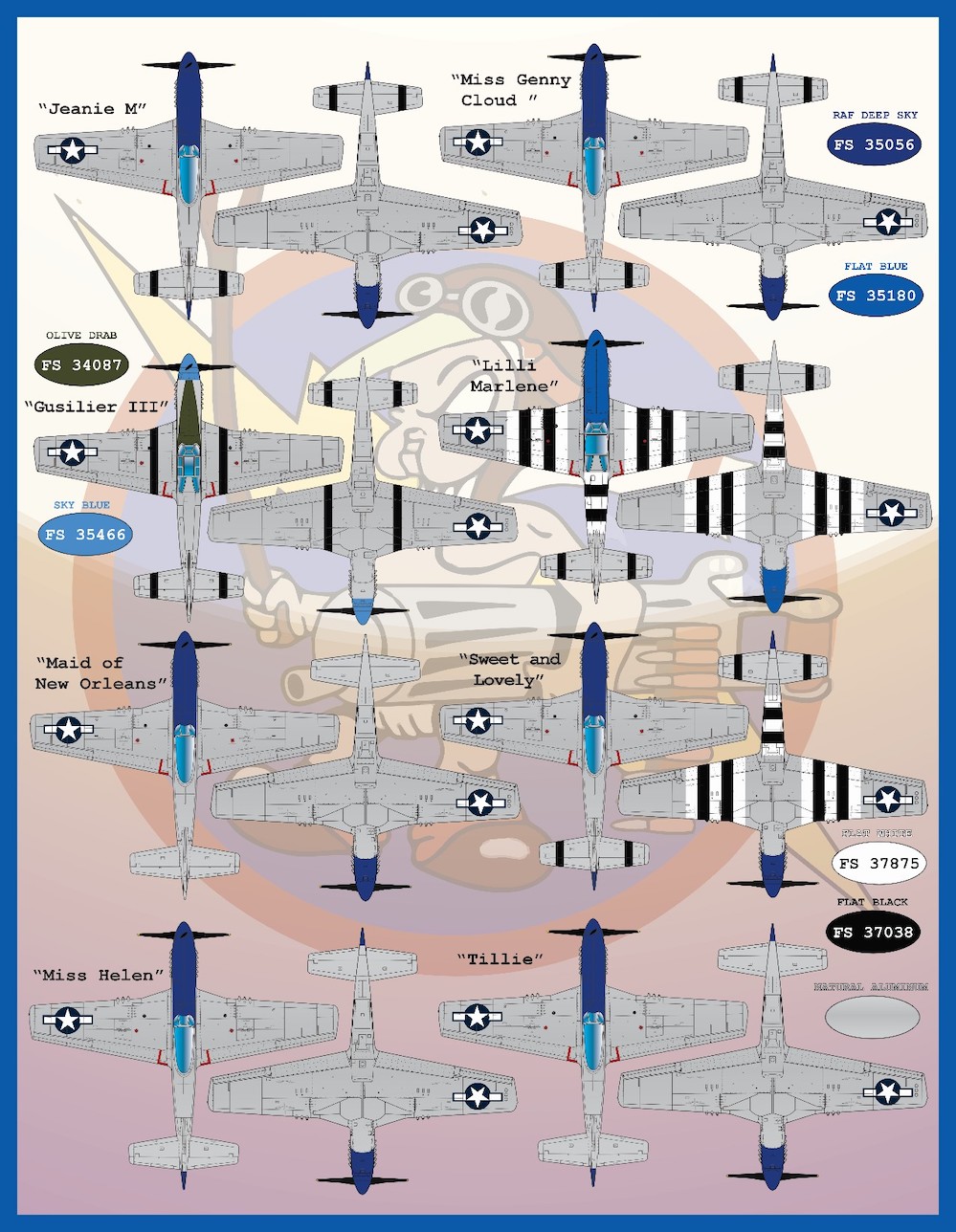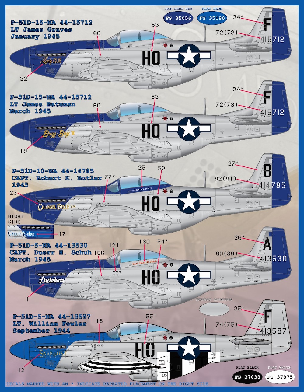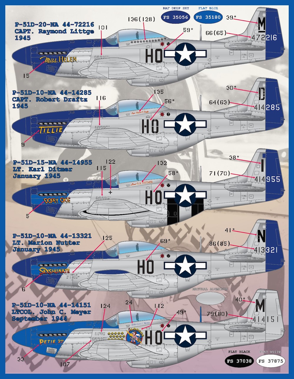 Furball Aero-Design - 1/48 'Meyers Maulers Part2' 48-095 covers 22 options for 347th Fighter Squadron North-American P-51B and P-51D Mustangs