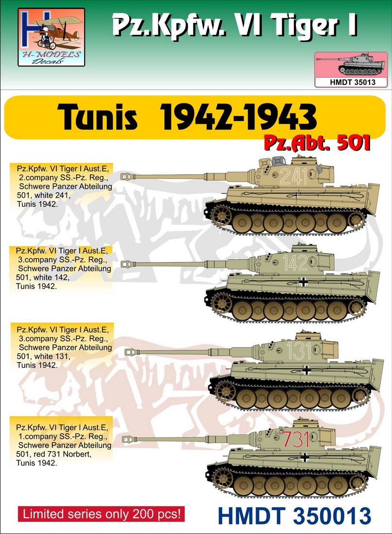 H-Model Decals - 1/35 Pz.Kpfw.VI Tiger I Tunis 1942-43 (Pz. Abt.501)