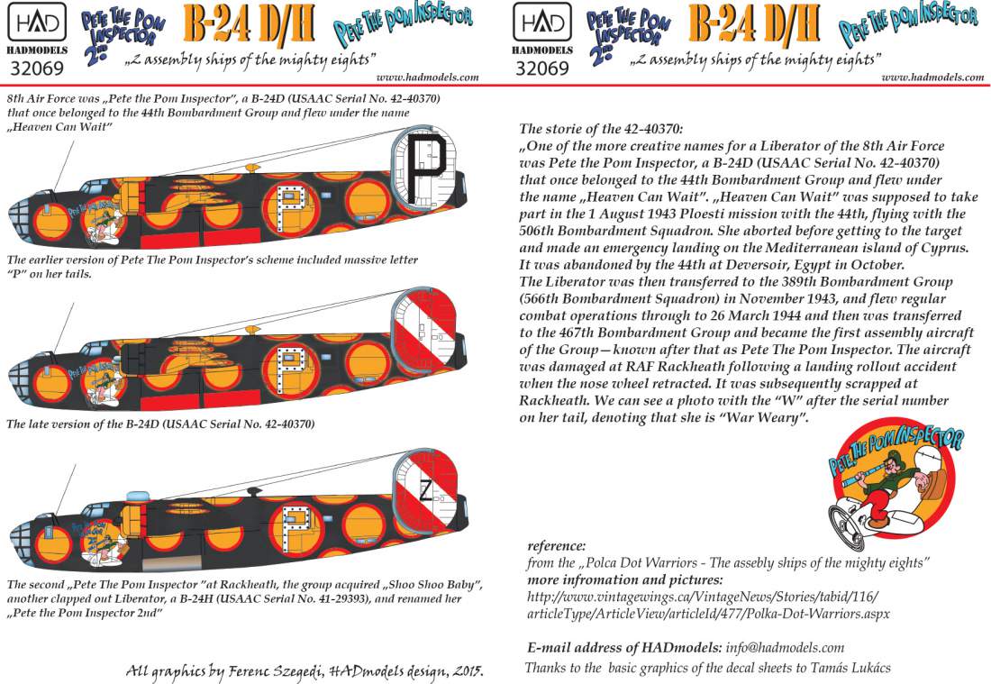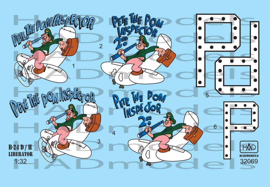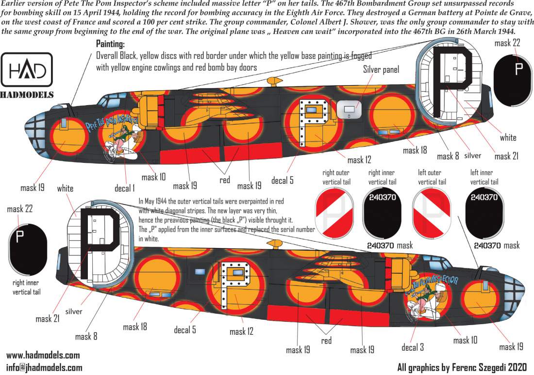 HAD - 1/32 Consolidated B-24D /H 'Pete the Pom Inspector' decal and mask sheets