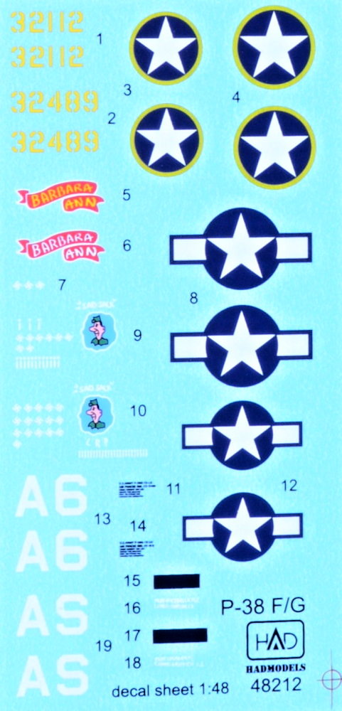 HAD - 1/48 Lockheed P-38F/G Lightning for new Tamiya kit with nose art for 'Barbara Ann' and 'The Sad Sack'
