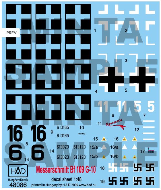HAD - 1/72 Decal Messerschmitt Bf 109 G-10