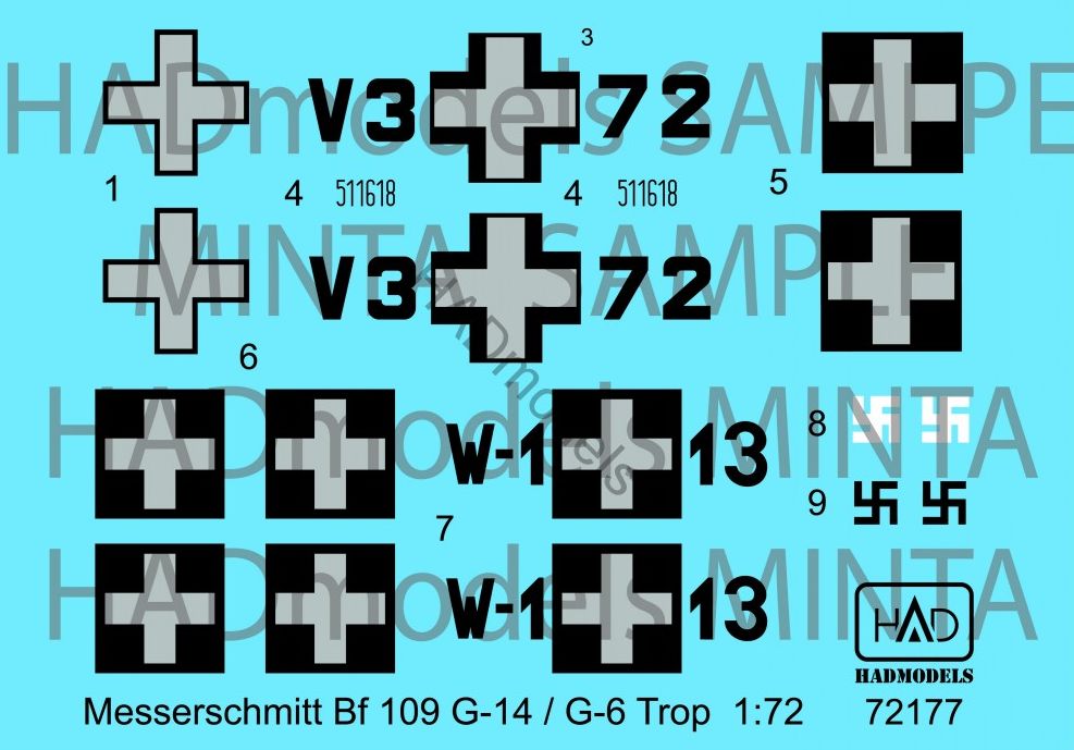 1/72 Decal Messers. Bf 109 G-6 Trop/G-14