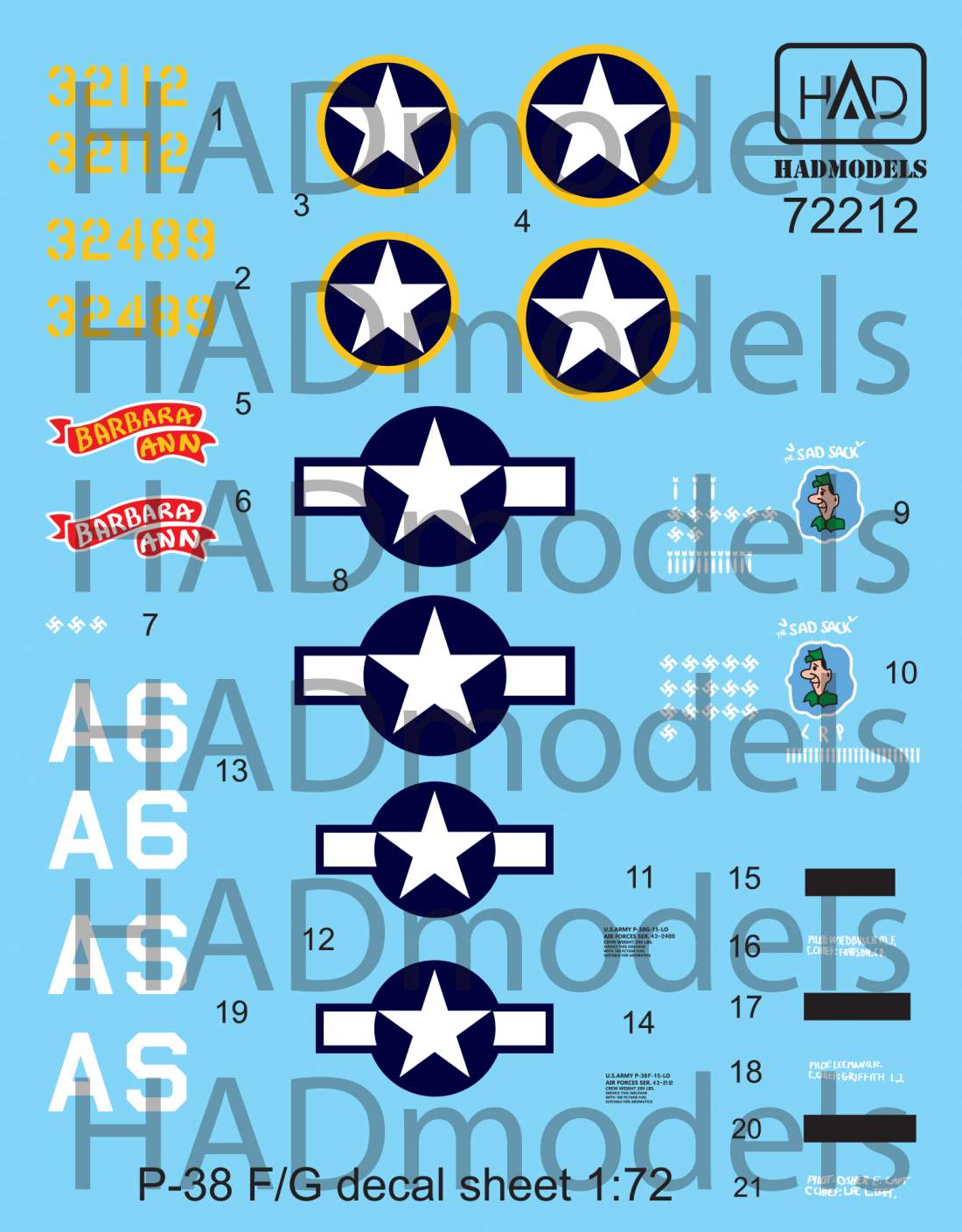 HAD - 1/72 Decal P-38 F/G above Europe (3x camo)