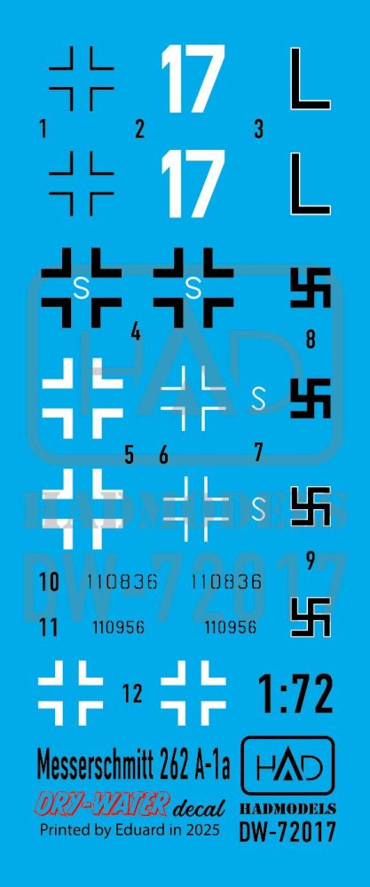 HAD - 1/72 Decal Messerschmitt 262 A-1a dry-water