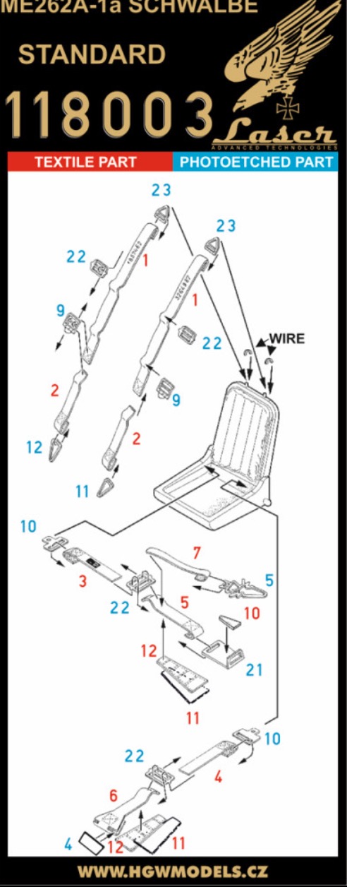 HGW - 1/18 Messerschmitt Me-262A-1a seatbelts are made from real microfibre and in combination with included photo etched buckles they look highly realistic. for Hobby Boss